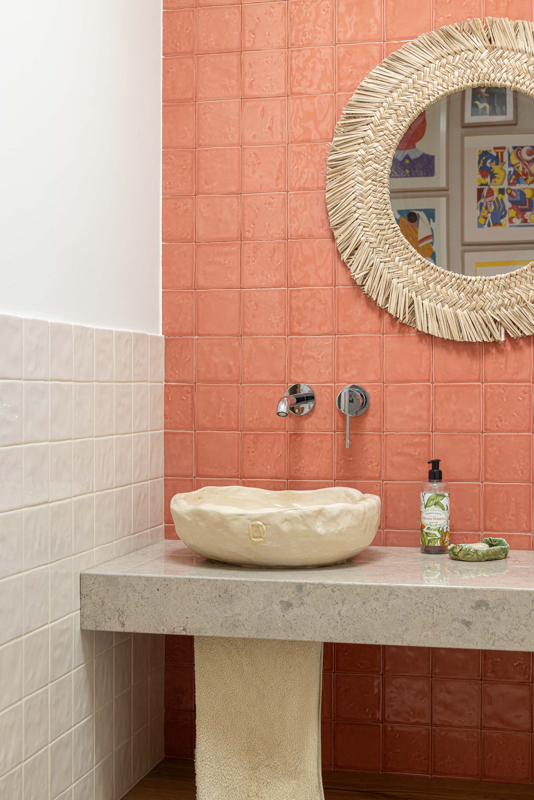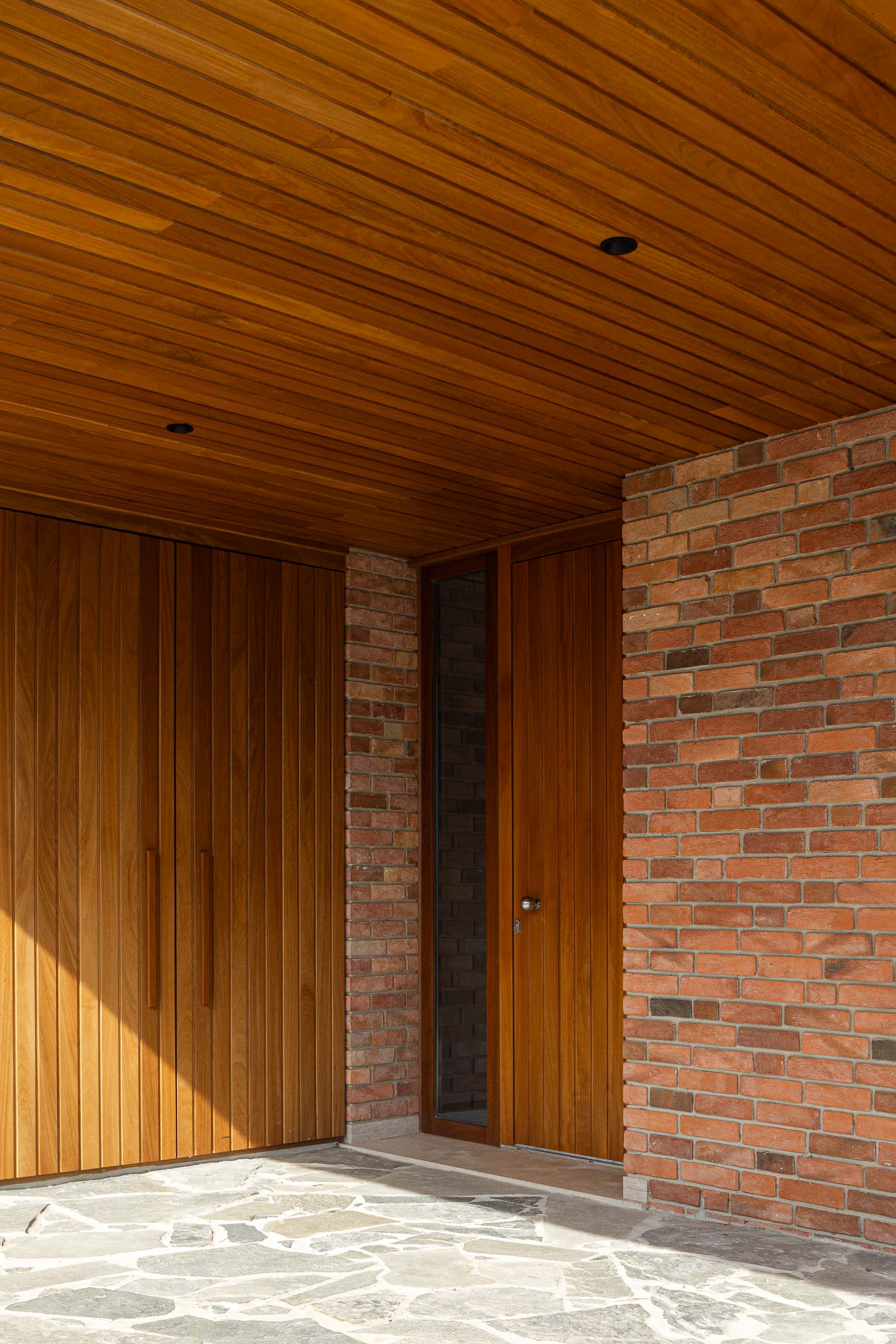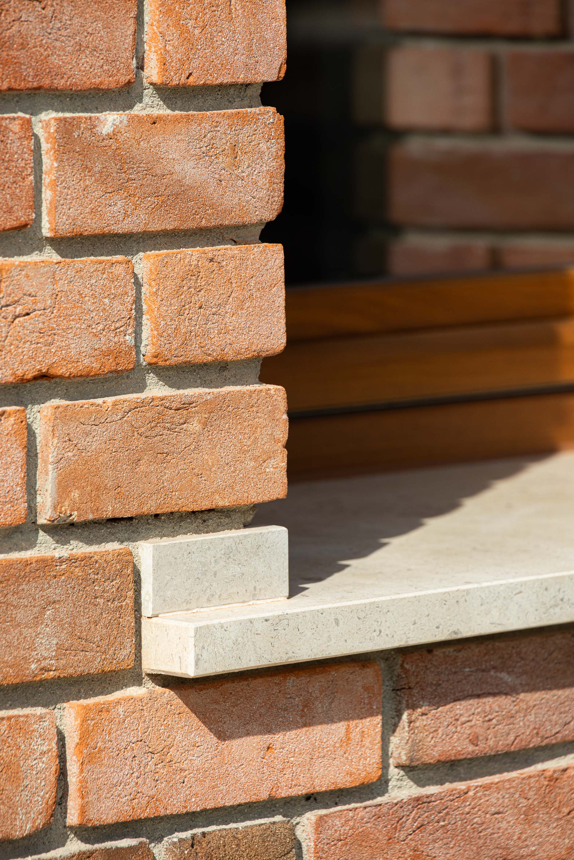A fachada foi forrada a tijolo de burro, conferindo-lhe um caráter intemporal e distintivo. No interior e no exterior privilegiámos a utilização de materiais naturais, reduzindo ao máximo o recurso a elementos sintéticos.